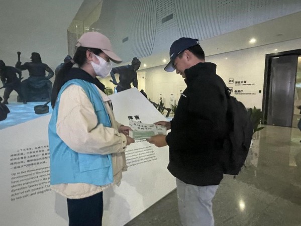 宣讲结束后,学院志愿者们身体力行,在展馆内发放“反对浪费,崇尚节约”宣传单,向每一位游客宣传厉行节约的重要性,游客们在阅读传单的过程中,感受节约光荣,浪费可耻,感悟“克勤于邦、克俭于家”的中华民族勤俭美德。