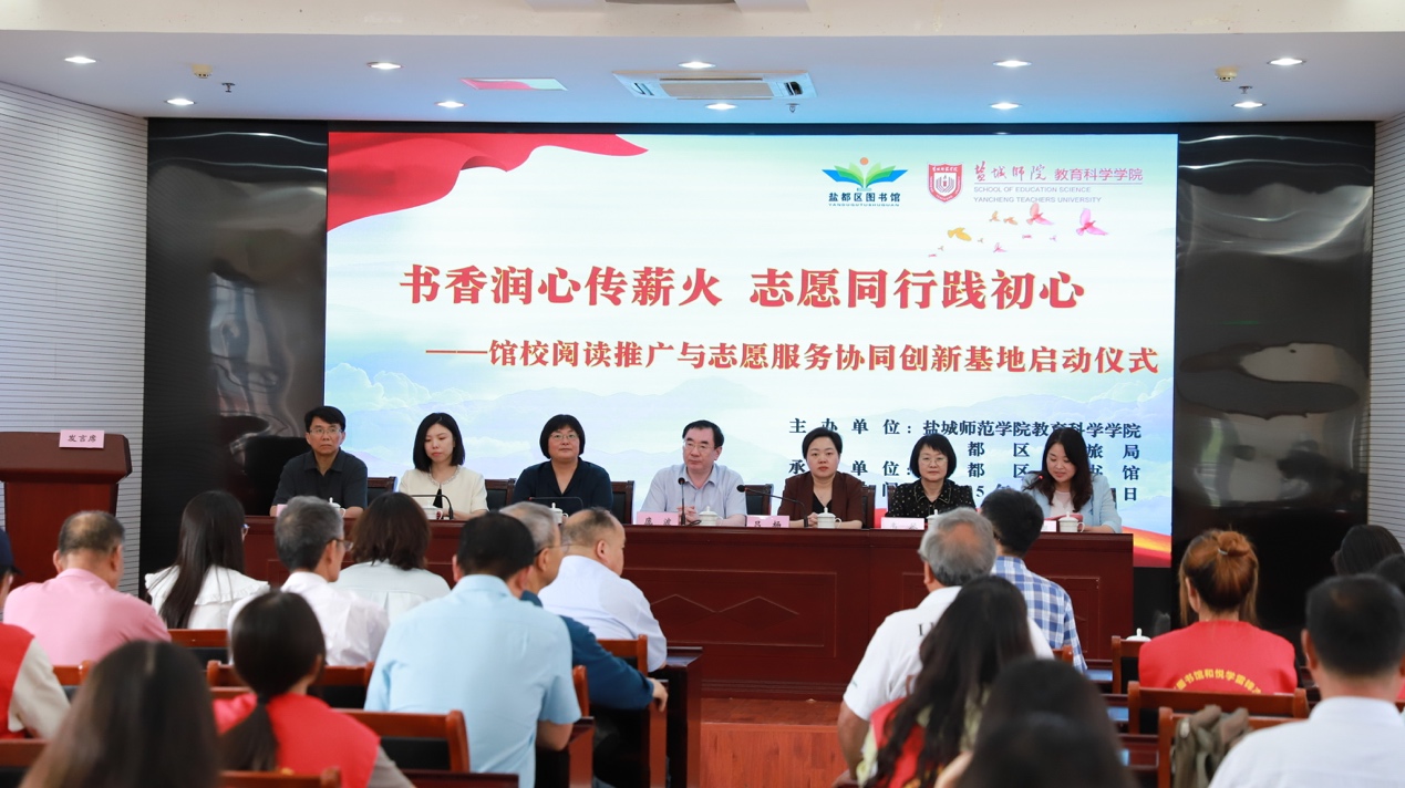 6月24日下午,学院与盐都区图书馆举办馆校阅读推广与志愿服务协同创新基地共建仪式暨2025年暑期社会实践启动仪式,校党委常委、副校长庞波、校党委常委、宣传部部长冯永玲、校团委书记陈晔、盐都区委常委宣传部部长吕杨、盐都区文旅局党委书记、局长韦琴、盐都区宣传部副部长王迎春、盐都区文旅局副局长周连兵、盐都区图书馆馆长王登佐、学院党委书记杨日晨、党委副书记海英等同志出席仪式,杨日晨主持仪式,学院百余位大学生志愿者参加活动。