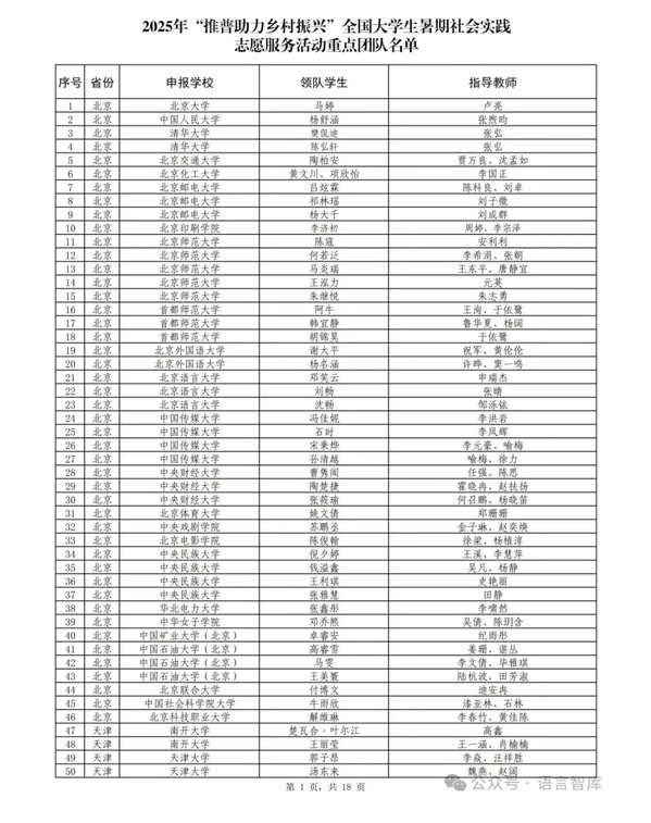 近日,教育部语言文字应用管理司、共青团中央青年发展部组织开展2025年“推普助力乡村振兴” 全国大学生暑期社会实践志愿服务活动,学院“普语润乡,筑梦疆桂”推普志愿服务团入选2025年“推普助力乡村振兴”全国大学生暑期社会实践志愿服务活动重点团队。