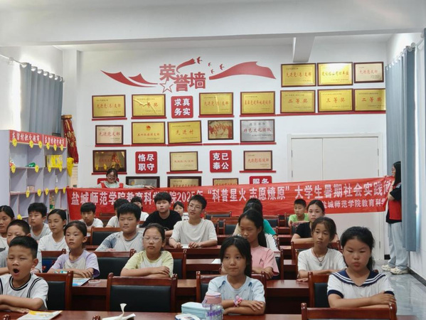2025年盛夏,学院科普星火,志愿燎原志愿服务团如盛夏的清风,带着知识的种子走进连云港市多个乡村社区。志愿者们以青春为笔,以科普为墨,在孩子们的心田描绘出绚丽的科学画卷。