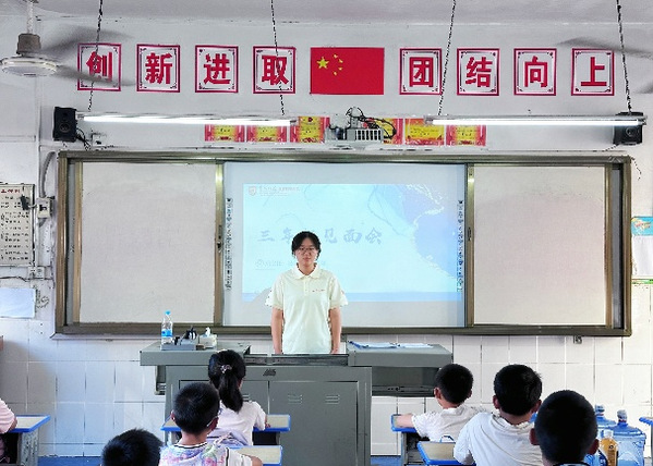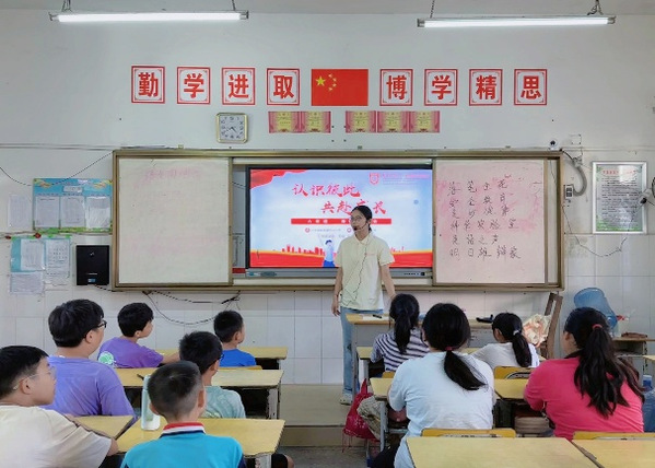 7月26日,学院“点亮微光,盐青先行”暑期志愿服务团在广西桂林兴安县高尚镇中心小学正式开班。活动伊始,支教大学生与孩子们携手开展校园大扫除,欢声笑语中,沉寂的校园重现生机。首次“班级见面会”上,志愿服务团队围绕“赴约、遵纪、护行”三大主题,通过互动游戏、情景模拟等生动形式,迅速拉近与乡村孩子们的距离。据悉,本次支教活动将延续学院“微光育人”传统,为当地学生提供为期半个月的特色课程与成长陪伴。