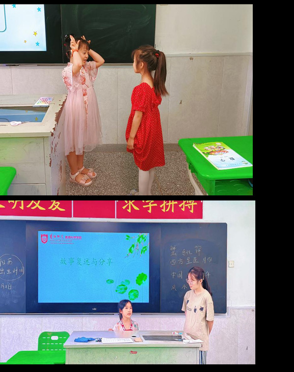 文化浸润课堂培育人文情怀。团队成员开展“以文化人”特色课程,通过多元互动提升学生人文素养。在“自然之美”绘画课上,孩子们用画笔描绘动物世界,并自发喊出“保护小动物”的倡议;“情绪表达”环节通过趣味模仿秀,鼓励孩子们展现真我。
