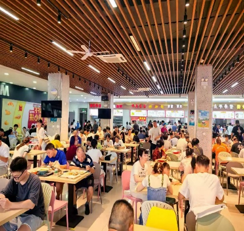 新长校区的午后阳光穿过萃园和沁园的窗棂,烤盘上的牛肉滋啦作响,酸汤肥牛的金汤映出云影,刀削面在师傅手中翻飞成雪;夜幕降临时,炭火微红,羊肉串滴落油脂激起星火,一旁的冰粉晃着月光的碎银,羊肉汤的暖雾与煎饼果子的麦香交织,把整座校园的夜色都温成了人间烟火的诗。