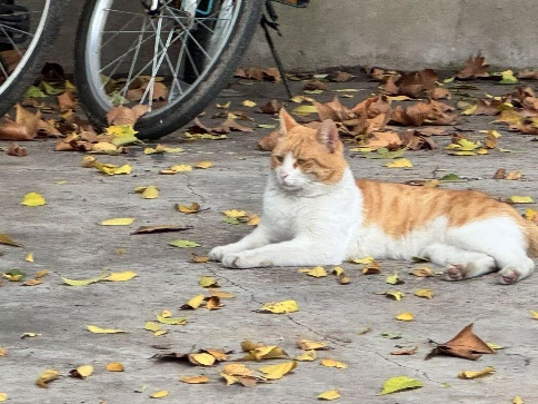 通榆校区的“猫学长”是只橘白相间的“老住户”,总在教学楼下打盹或是蹲守在宿舍区“迎送”学子。同学常带猫粮投喂,它会亲昵蹭腿,偶尔还“旁听”窗边课,成了校园里温柔的小确幸。