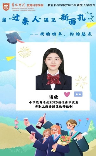 为帮助2025级新生更好地适应大学生活,明确学习目标,做好生涯规划,8月22日晚,学院邀请到2025届小学教育专业毕业生谈欣进行第三期分享。她在四年的努力中,逐渐明确目标,坚定方向,最终成功考取上海市青浦区小学教育编制,实现了“走上讲台”的梦想。从青涩到坚定,从摸索到收获,谈欣用自己的故事,诠释了什么是坚持与成长。