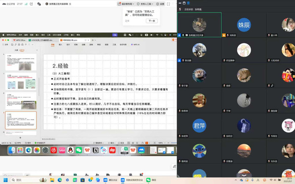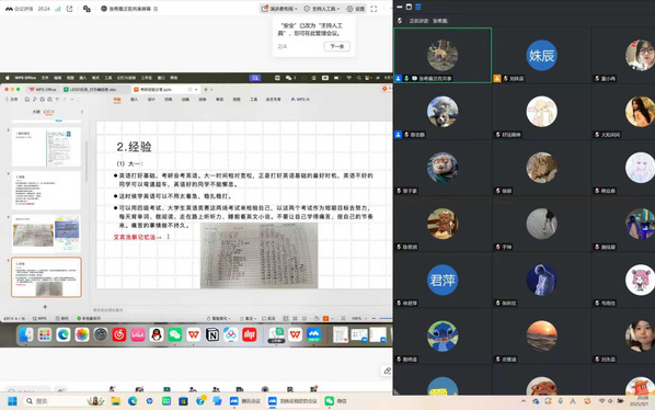 张希晨着重强调大学生涯的前期一定要夯实基础,做到有意义、高效率的学习。在专业课学习方面,她建议要开始构建适合自身的知识体系,做到每日及时复盘和强化。每次接受新知识,都要通过同化、顺应等方式把它纳入到自己的体系中。例如,课堂上做好初步的笔记,搭建好大致框架,课后再通过多种渠道,自我检索资源,细化完善课堂笔记,达到深化知识的效果。张希晨还提倡科学学习,运用心理学知识,契合自身学习习惯,尽量提高自身能力的下限。面对英语学习,她提出灵活运用艾宾浩斯记忆曲线,定期背单词、做阅读、练习听力,打好英语基础,顺利通关英语四六级。