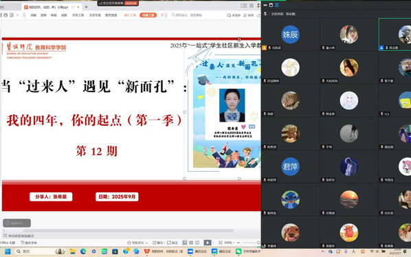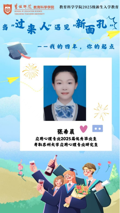 为帮助2025级新生更好地适应大学生活,明确学习目标,做好学习规划,9月1日晚,学院邀请到2025届应用心理学专业优秀毕业生张希晨作为“当‘过来人’遇见‘新面孔’:我的四年,你的起点”主题分享会第12期分享者。在考研形势不断严峻的当下,张希晨仍能千帆过尽,不坠青云,脱颖而出,考取苏州大学应用心理学专业研究生。她的大学四年是不断试错,积极进取的修炼过程。让我们循着她成长的足迹,思考其成功的秘诀。