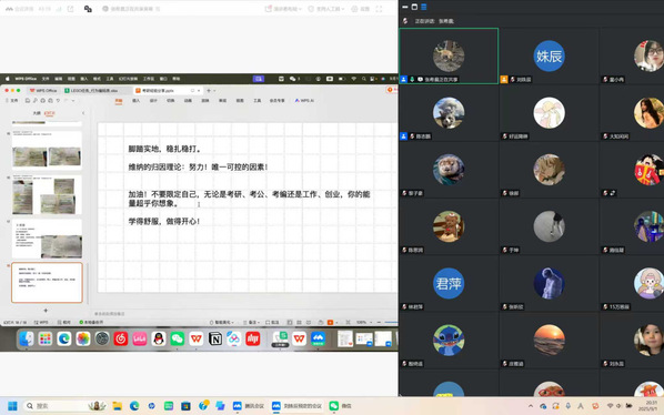 张希晨将自身所有的经验与方法倾囊相授。她以自身的经历为证明,鼓励学弟学妹脚踏实地,稳扎稳打。她引用维纳的归因理论:努力!唯一的可控因素!以此来强调人定胜天,同时又告知大家:不要限定自己的未来,你的能力超乎自己的想象。梦想不会辜负一个青春的灵魂,过往的汗水与努力终能得到兑现。以愿景为舵,以行动为桨,祝大家学有所成,自信开启大学生活。