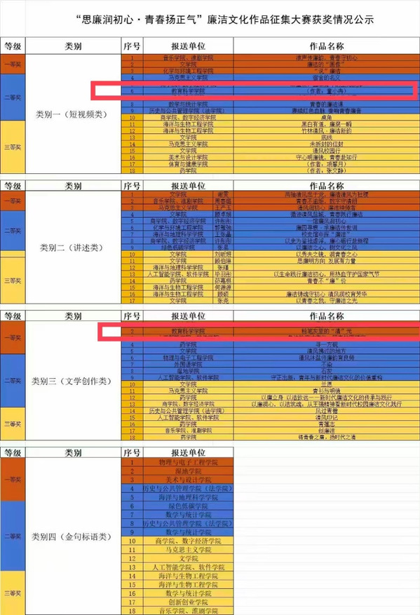 活动启动后,同学们以饱满的热情投入创作,从镜头下鲜活的廉洁故事到笔墨间隽永的清风正气,从富有创意的视频展示到铿锵有力的标语金句,每一份作品都凝聚着大家对廉洁文化的独特理解与真挚追求。经过校评审团队的专业评审与严格筛选,张侨芮同学的文学作品《粉笔灰里的“清”光》以深刻的主题立意、细腻的文字笔触与独特的视角表达脱颖而出,斩获文学作品类一等奖;童小冉同学的短视频作品则以新颖的表现形式、生动的画面叙事诠释廉洁主题,荣获短视频类二等奖。